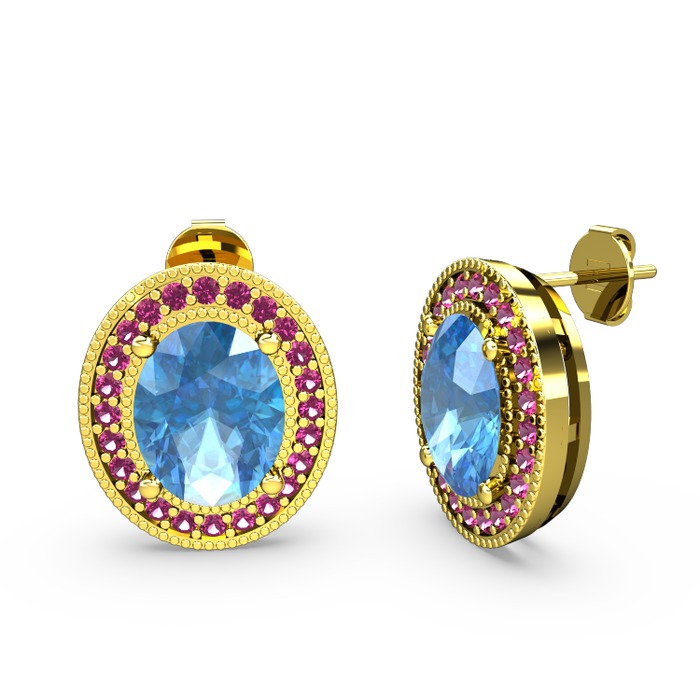 Akuamarin ve rodolit garnet 925 ayar altın kaplama gümüş küpe