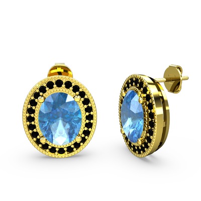 Akuamarin ve siyah zirkon 925 ayar altın kaplama gümüş küpe