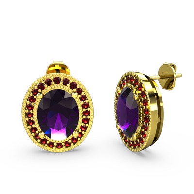 Ametist ve garnet 925 ayar altın kaplama gümüş küpe