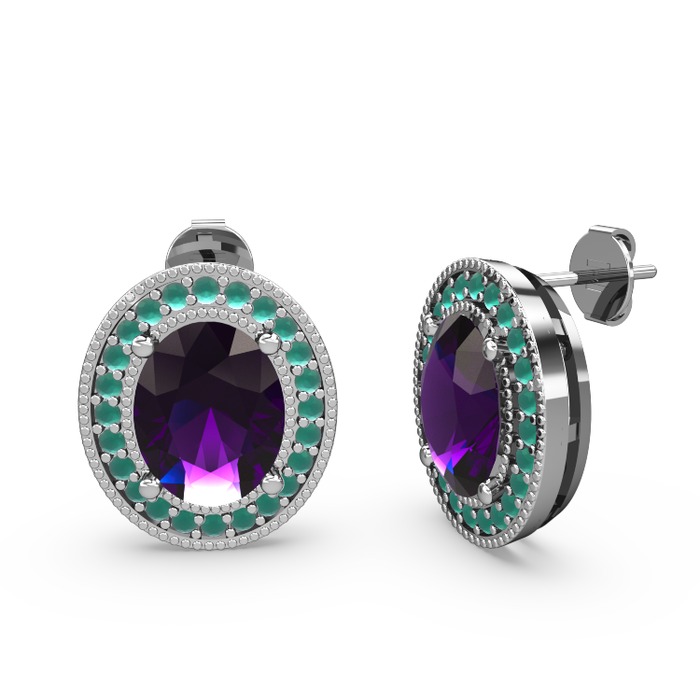 Ametist ve kök zümrüt 18 ayar beyaz altın küpe
