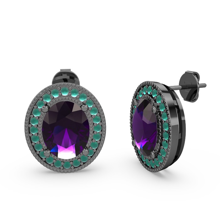 Ametist ve kök zümrüt 925 ayar siyah rodyum kaplama gümüş küpe
