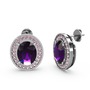 Ametist ve pembe kuvars 14 ayar beyaz altın küpe