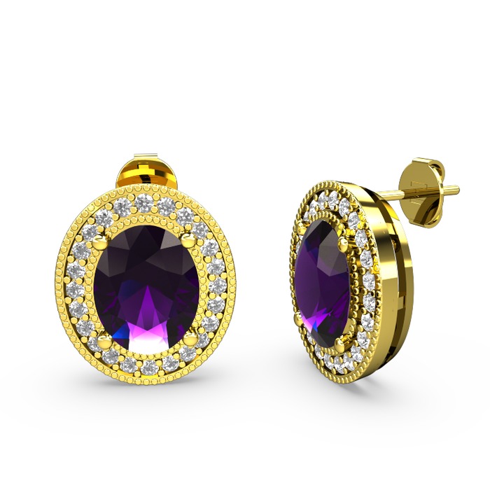 Ametist ve pırlanta 14 ayar altın küpe (0.528 karat)