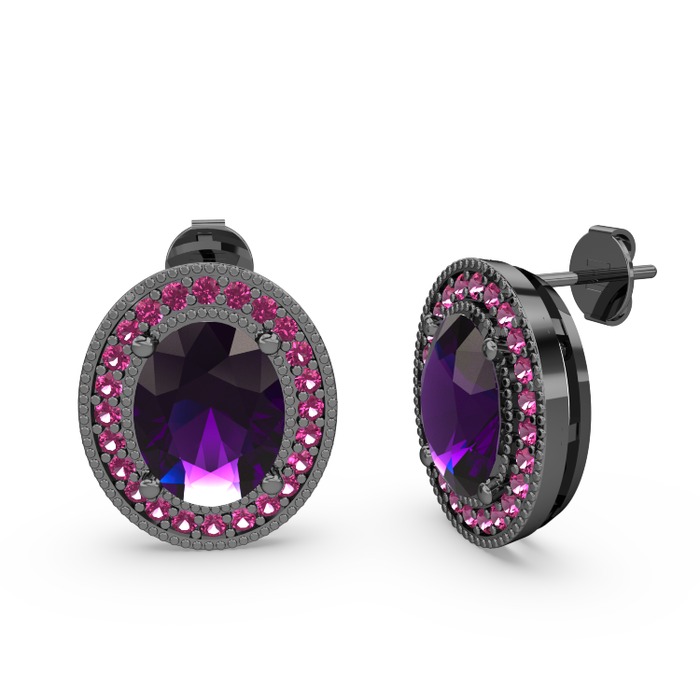 Ametist ve rodolit garnet 925 ayar siyah rodyum kaplama gümüş küpe