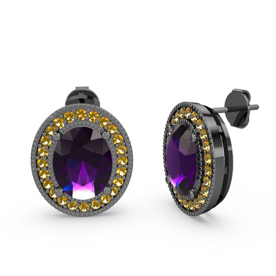 Ametist ve sitrin 925 ayar siyah rodyum kaplama gümüş küpe