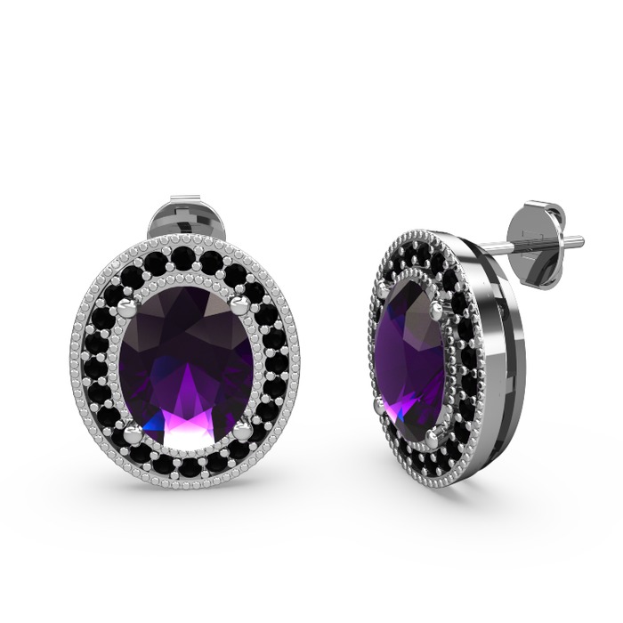 Ametist ve siyah zirkon 18 ayar beyaz altın küpe