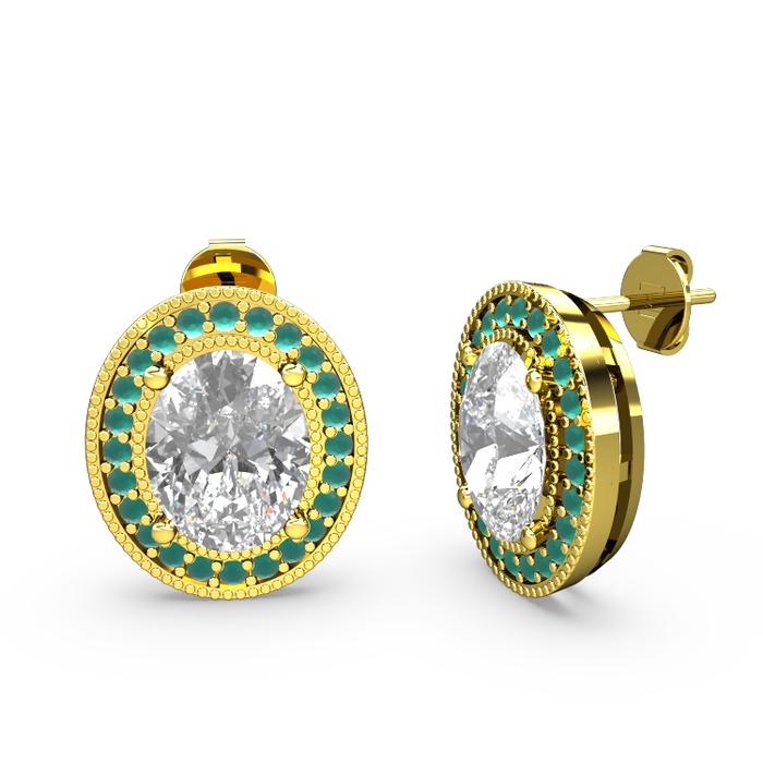 Beyaz zirkon ve kök zümrüt 925 ayar altın kaplama gümüş küpe