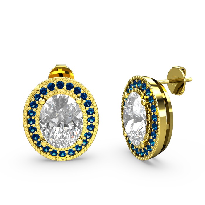 Beyaz zirkon ve lab safir 925 ayar altın kaplama gümüş küpe