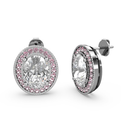 Beyaz zirkon ve pembe kuvars 14 ayar beyaz altın küpe