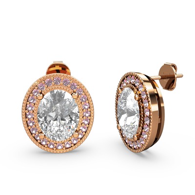 Beyaz zirkon ve pembe kuvars 925 ayar rose altın kaplama gümüş küpe