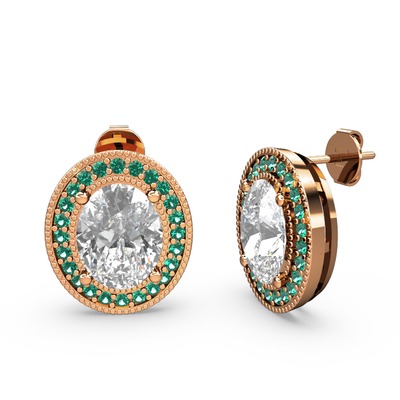 Beyaz zirkon ve yeşil kuvars 18 ayar rose altın küpe