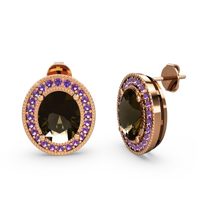 Dumanlı kuvars ve ametist 8 ayar rose altın küpe