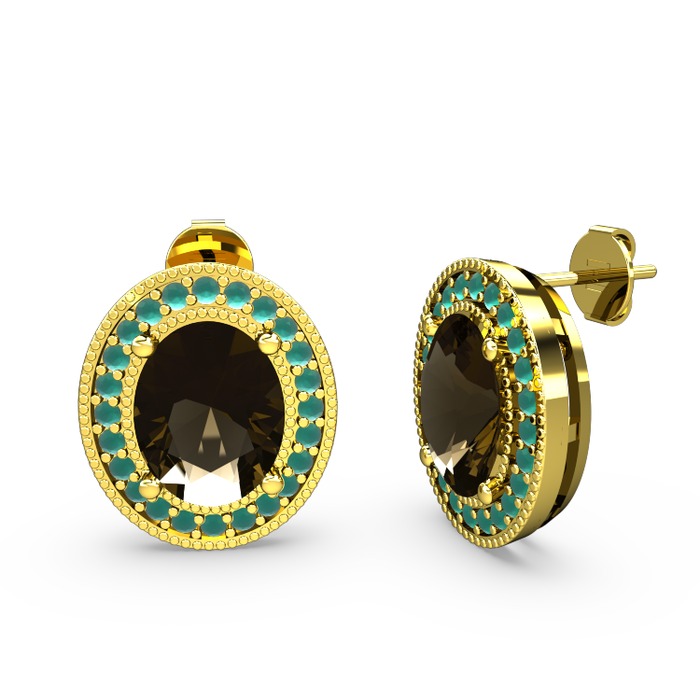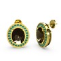 Dumanlı kuvars ve kök zümrüt 8 ayar altın küpe