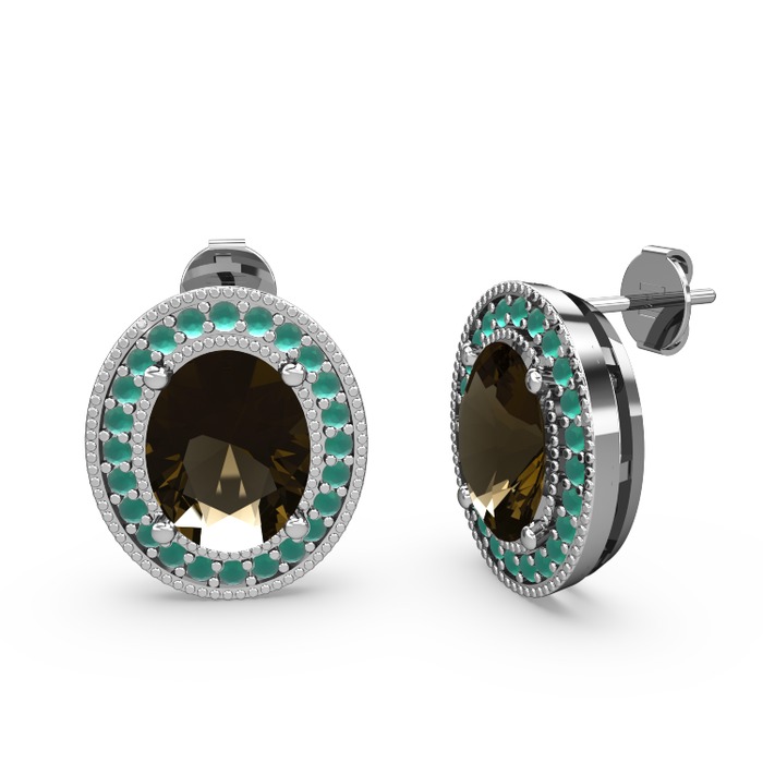 Dumanlı kuvars ve kök zümrüt 925 ayar gümüş küpe