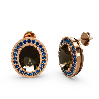 Dumanlı kuvars ve lab safir 8 ayar rose altın küpe