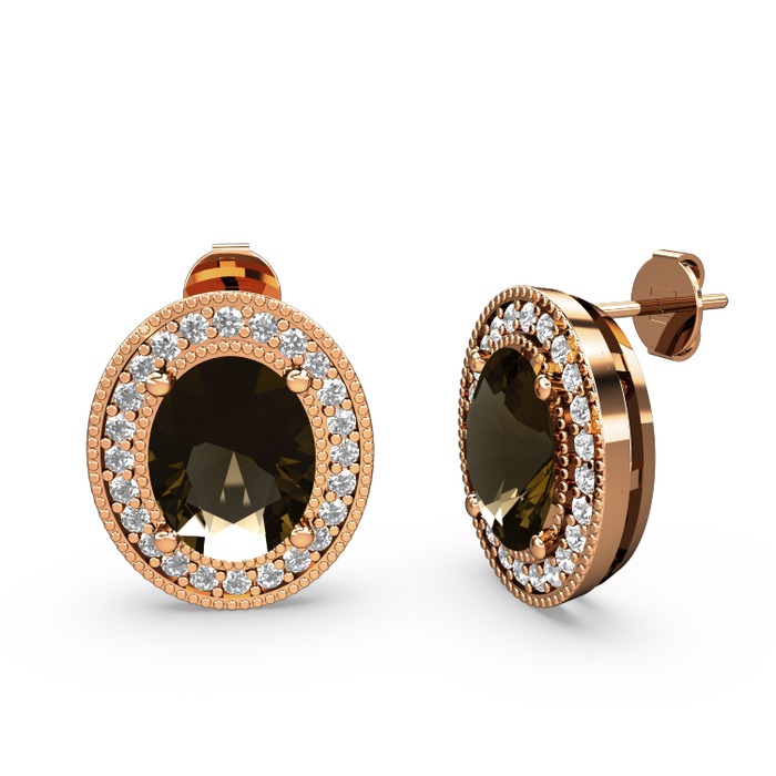 Dumanlı kuvars ve pırlanta 8 ayar rose altın küpe (0.528 karat)