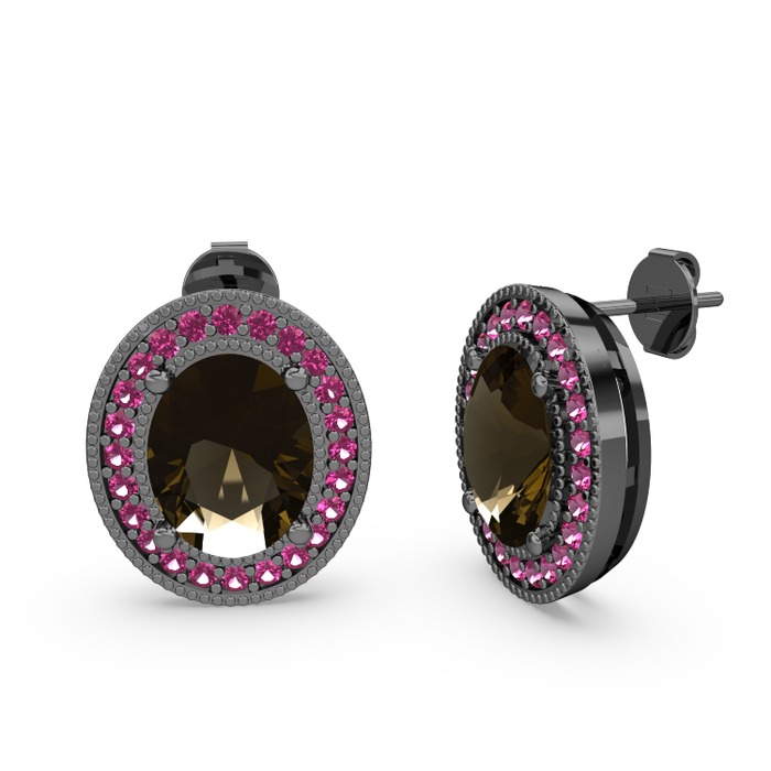 Dumanlı kuvars ve rodolit garnet 925 ayar siyah rodyum kaplama gümüş küpe