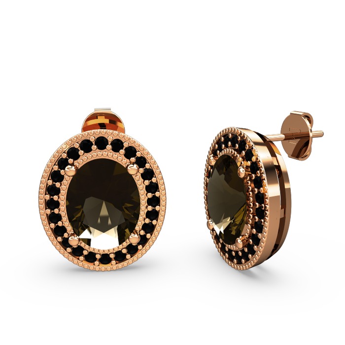 Dumanlı kuvars ve siyah zirkon 8 ayar rose altın küpe