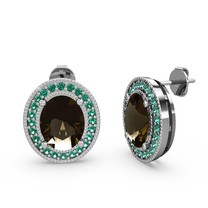Dumanlı kuvars ve yeşil kuvars 8 ayar beyaz altın küpe