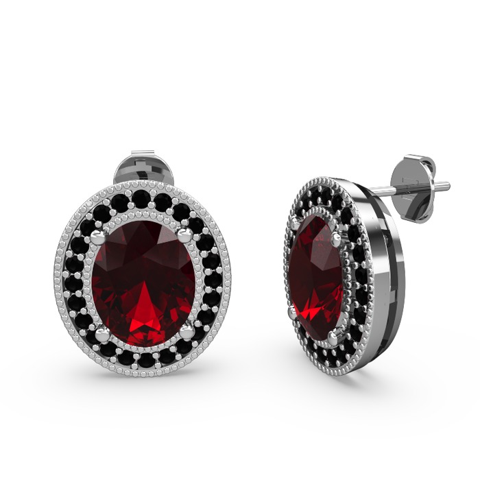 Garnet ve siyah zirkon 925 ayar gümüş küpe