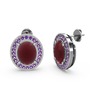 Kök yakut ve ametist 8 ayar beyaz altın küpe