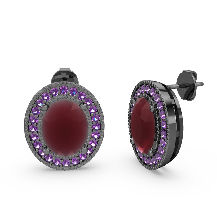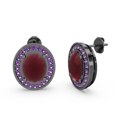 Kök yakut ve ametist 925 ayar siyah rodyum kaplama gümüş küpe