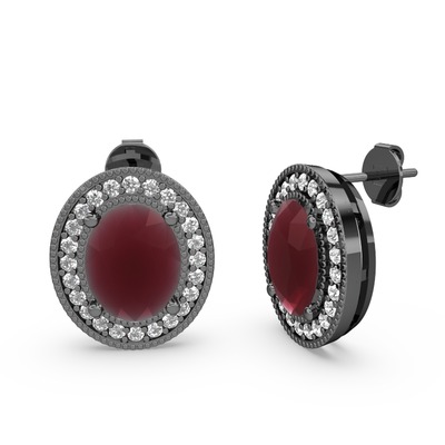Kök yakut ve beyaz zirkon 925 ayar siyah rodyum kaplama gümüş küpe