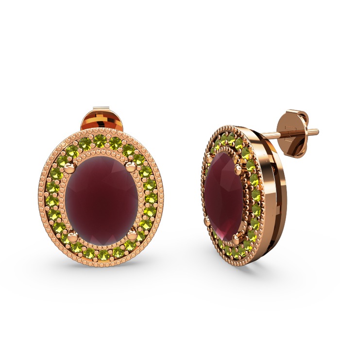 Kök yakut ve peridot 925 ayar rose altın kaplama gümüş küpe