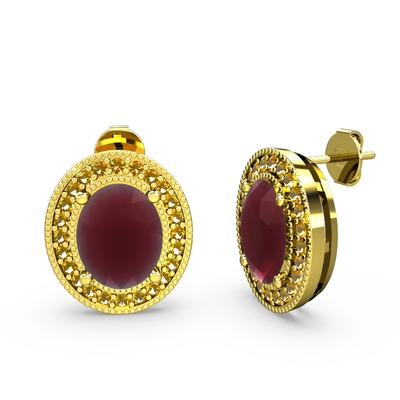 Kök yakut ve sitrin 14 ayar altın küpe