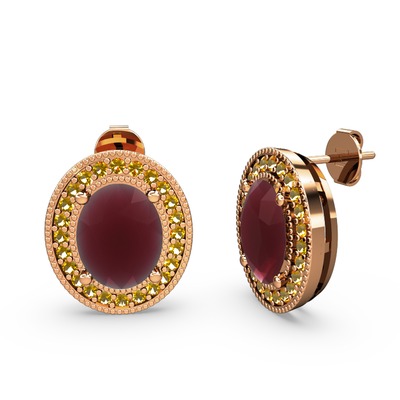 Kök yakut ve sitrin 925 ayar rose altın kaplama gümüş küpe