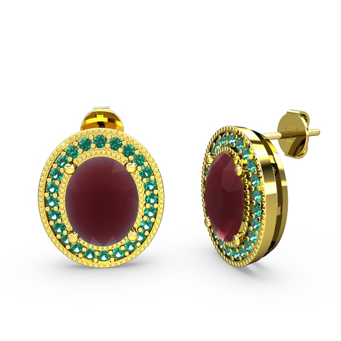 Kök yakut ve yeşil kuvars 8 ayar altın küpe