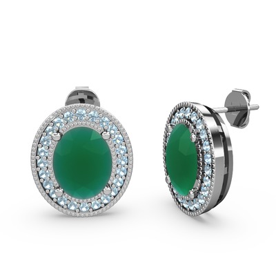 Kök zümrüt ve akuamarin 8 ayar beyaz altın küpe