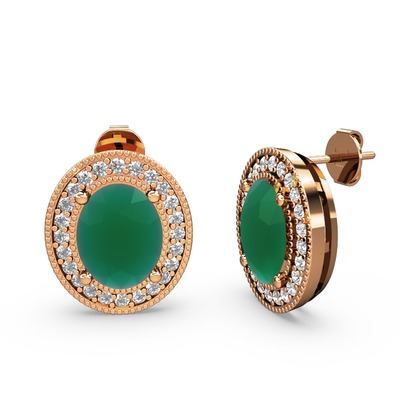 Kök zümrüt ve beyaz zirkon 14 ayar rose altın küpe