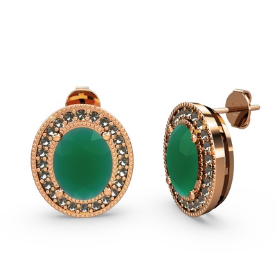 Kök zümrüt ve dumanlı kuvars 14 ayar rose altın küpe