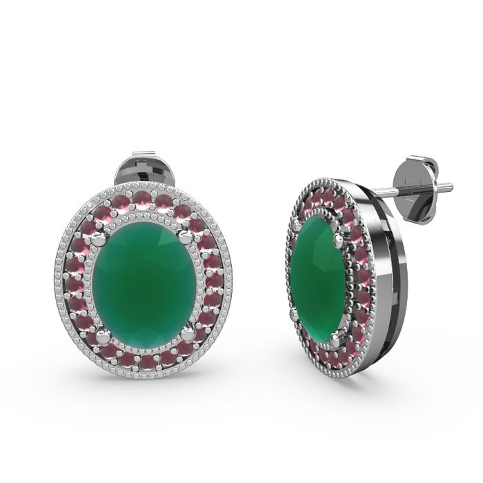 Kök zümrüt ve kök yakut 8 ayar beyaz altın küpe