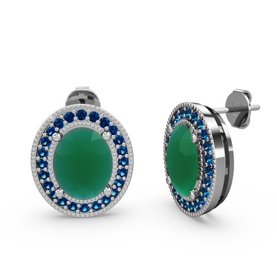 Kök zümrüt ve lab safir 8 ayar beyaz altın küpe