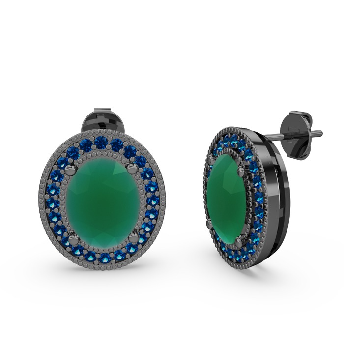 Kök zümrüt ve lab safir 925 ayar siyah rodyum kaplama gümüş küpe