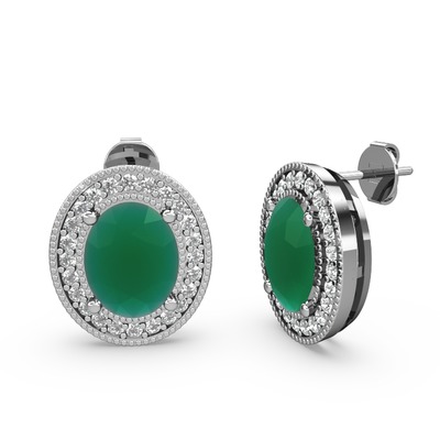 Kök zümrüt ve pırlanta 14 ayar beyaz altın küpe (0.528 karat)