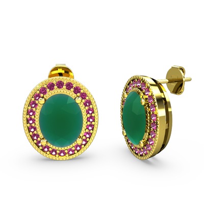 Kök zümrüt ve rodolit garnet 925 ayar altın kaplama gümüş küpe
