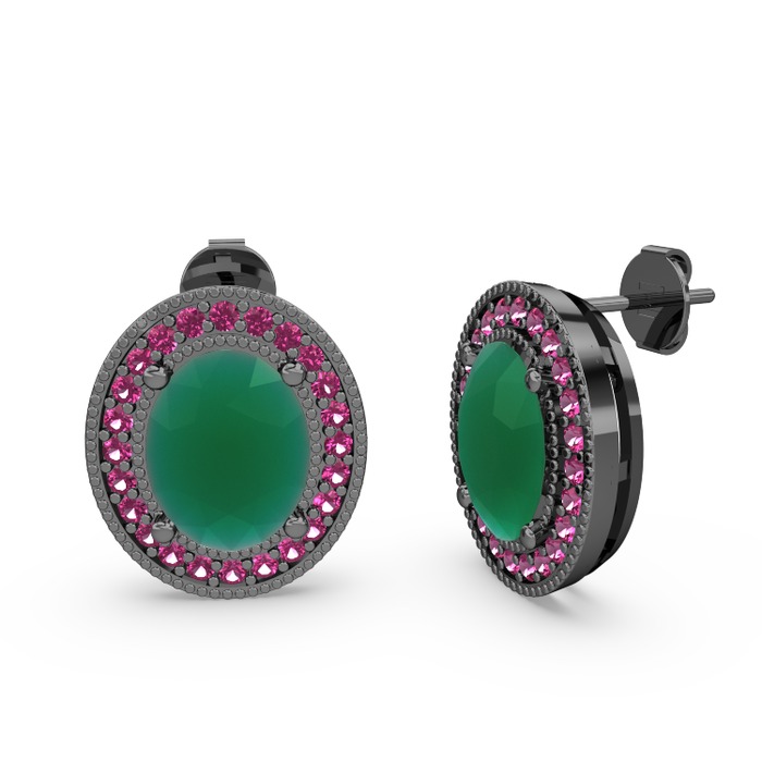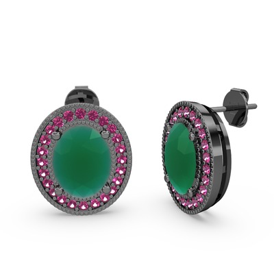 Kök zümrüt ve rodolit garnet 925 ayar siyah rodyum kaplama gümüş küpe