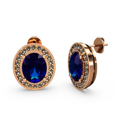 Lab safir ve dumanlı kuvars 925 ayar rose altın kaplama gümüş küpe