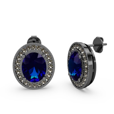 Lab safir ve dumanlı kuvars 925 ayar siyah rodyum kaplama gümüş küpe