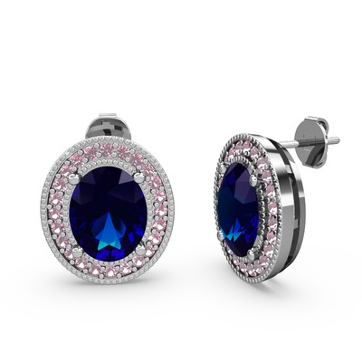 Lab safir ve pembe kuvars 925 ayar gümüş küpe