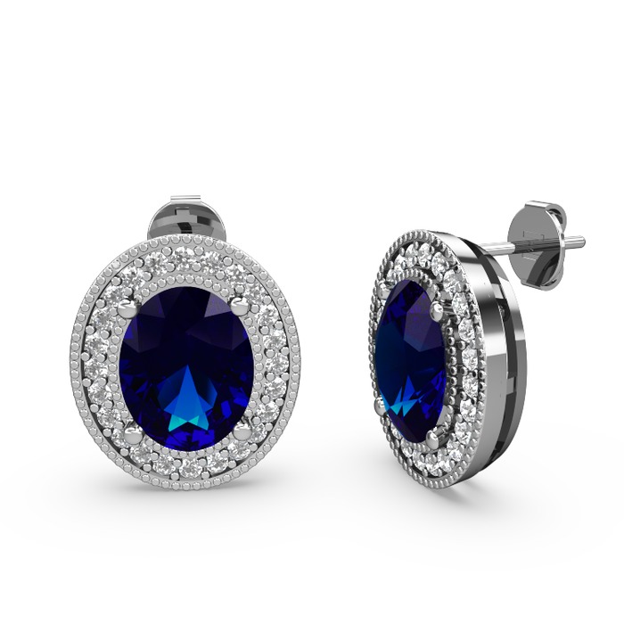 Lab safir ve pırlanta 14 ayar beyaz altın küpe (0.528 karat)