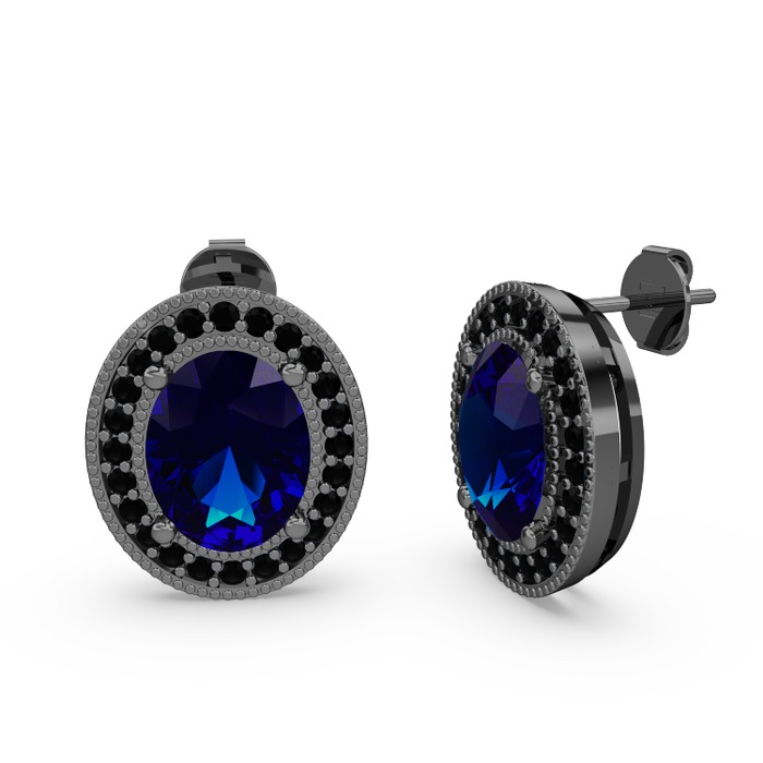 Lab safir ve siyah zirkon 925 ayar siyah rodyum kaplama gümüş küpe