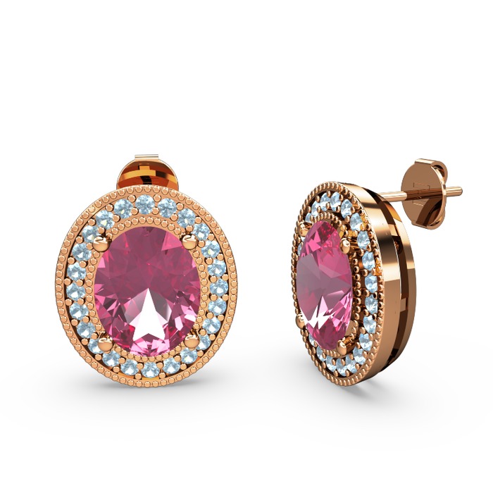 Pembe kuvars ve akuamarin 18 ayar rose altın küpe