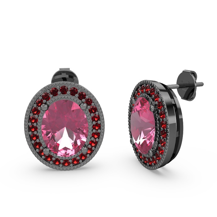 Pembe kuvars ve garnet 925 ayar siyah rodyum kaplama gümüş küpe