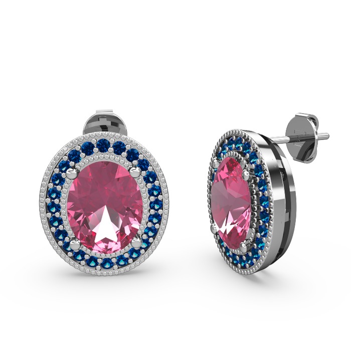 Pembe kuvars ve lab safir 925 ayar gümüş küpe
