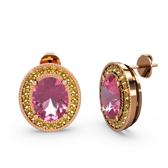 Pembe kuvars ve sitrin 925 ayar rose altın kaplama gümüş küpe