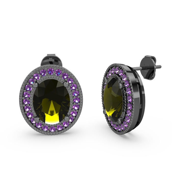Peridot ve ametist 925 ayar siyah rodyum kaplama gümüş küpe